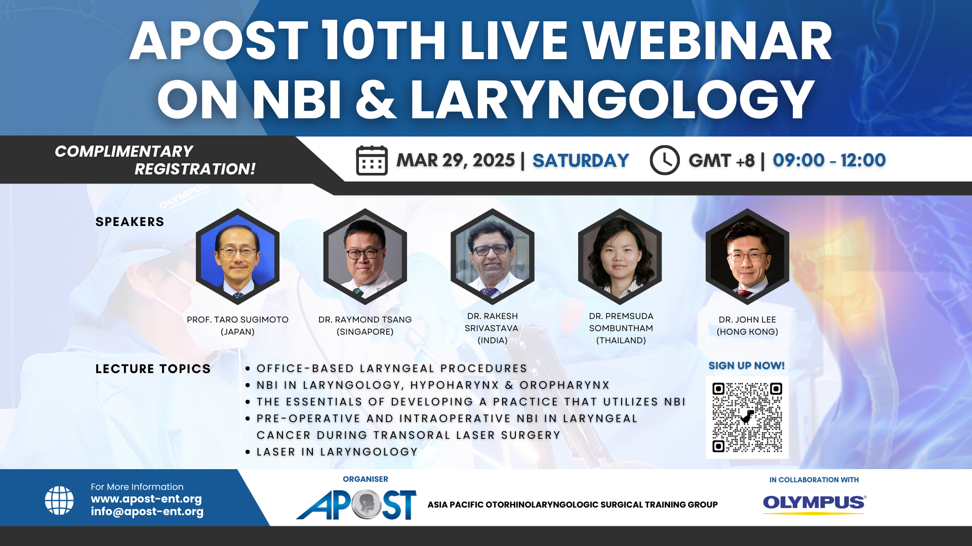 This webinar comprises dadictic lectures revolving around the application of NBI and laser on diagnosis and treatment of laryngeal diseases. There will be case discussion and Q&A sessions.
