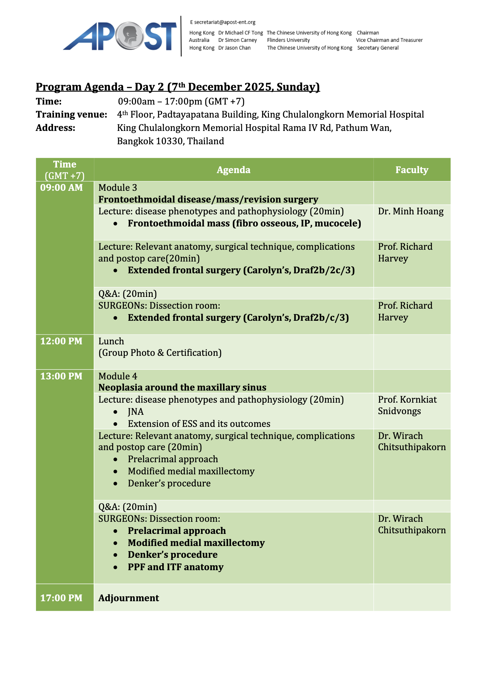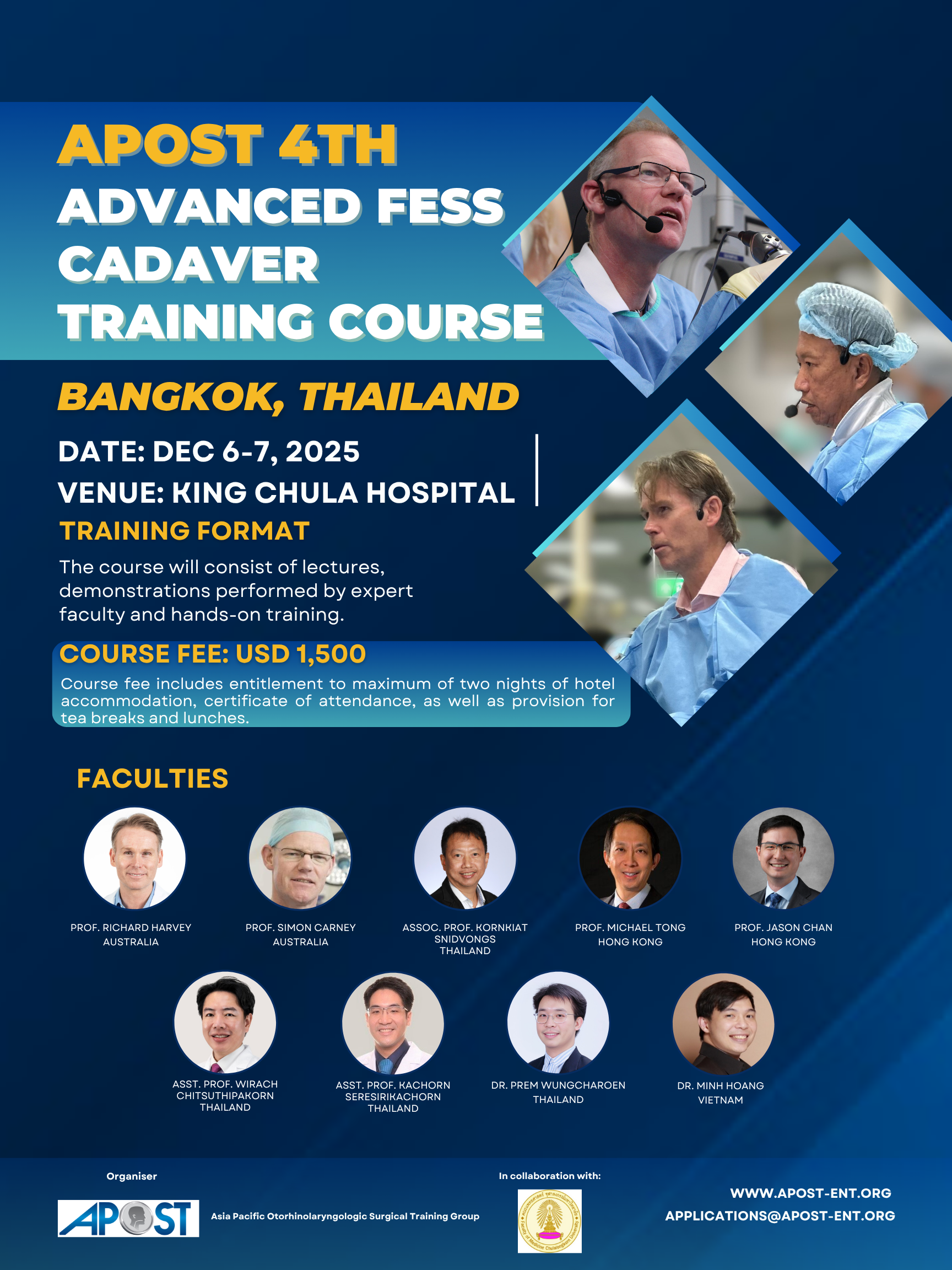 Observer registration is now open for the APOST Bangkok FESS Course, 6–7 December 2025 at Chulalongkorn Hospital.