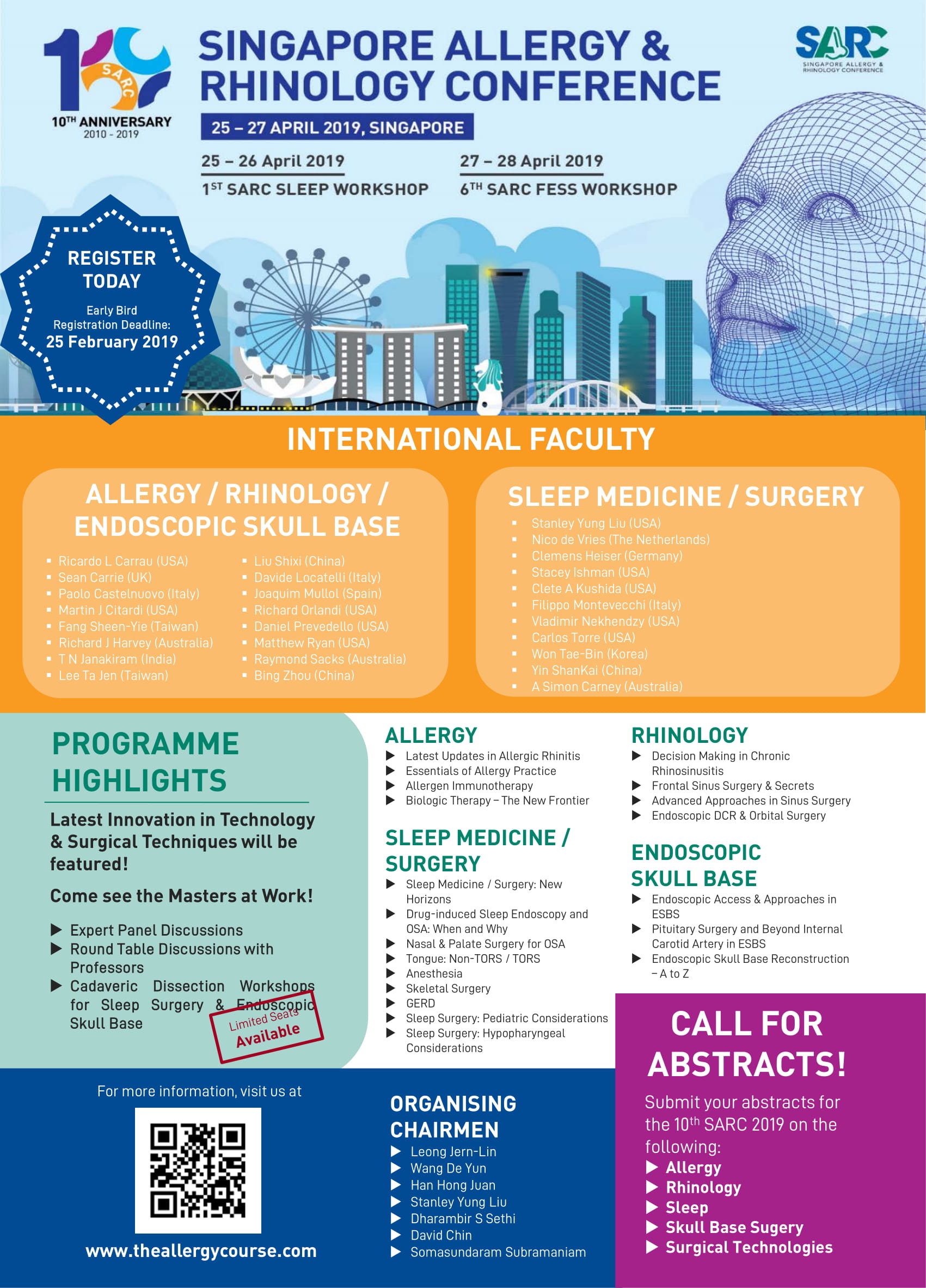 I am very happy that I can get in to the hands on dissection cadaver course in SARC 2019 in Singapore. Beginning with the trainer that well known as the expert in their speciality from all over the world. From the 1st day, Dr Leong Jern-Lin welcomed us and made us easy to adjust our self in the dissection. Basic FESS explanation and dissection by Prof Sethi (our well known Master in Country around South East Asia) gave us advantage perception of Basic FESS especially frontal surgery, followed by Prof Paolo Battaglia and Prof Lavide Locatelli who gave us more understanding about Modified Lothrop Surgery and Skull base Surgery. On the 2nd day, Dr Janakiram (India) and Prof Ricardo L Carrau (USA) gave us more understanding about skull base conceps surgery, followed by explanation of extend maxillary sinus surgery for tumors around it and behind it ( Medial Maxillectomy, Transpterygoid to ITF, Modified Denker approach and last Endoscopic Nasopharyngectomy). For all above the FESS dissection course, for me it is incredible. Thank you APOST for giving me the opportunity to get more knowledge and more friends (lecturers or participants). Hope you can give this opportunity for more of ENT specialists in all Asian Region to be better in this field together, better for us and better for our students, residents and especially for our patients.